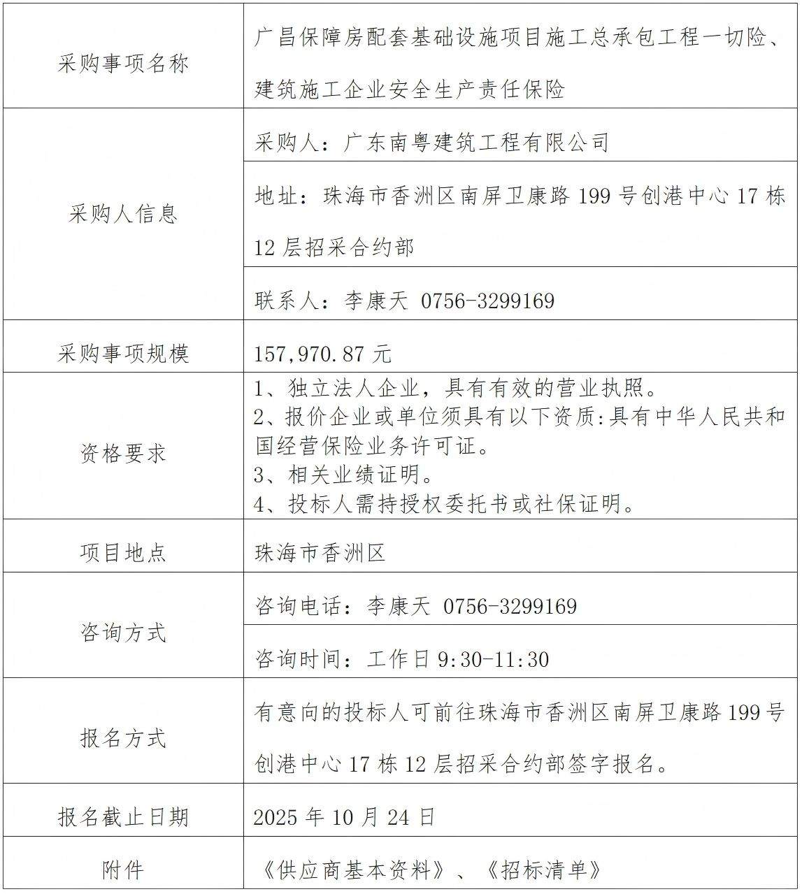 廣昌保障房配套基礎(chǔ)設(shè)施項(xiàng)目施工總承包工程一切險(xiǎn)、建筑施工企業(yè)安全生產(chǎn)責(zé)任保險(xiǎn) 專欄:工程招標(biāo) 發(fā)布日期: 2025-10-23 作者:招采管理中心 附件:供應(yīng)商基本資料表 附件:廣昌保障房配套基礎(chǔ)設(shè)施項(xiàng)目施工總承包工程工程一切險(xiǎn)及安責(zé)險(xiǎn)保險(xiǎn)服務(wù)招標(biāo)清單 返回列表 上一篇:廣昌保障房配套基礎(chǔ)設(shè)施項(xiàng)目施工總承包--軟基處理工程專業(yè)分包 下一篇:廣昌保障房配套基礎(chǔ)設(shè)施項(xiàng)目施工總承包--臨建零星工程勞務(wù)分包(原臨建專業(yè)分包變更)