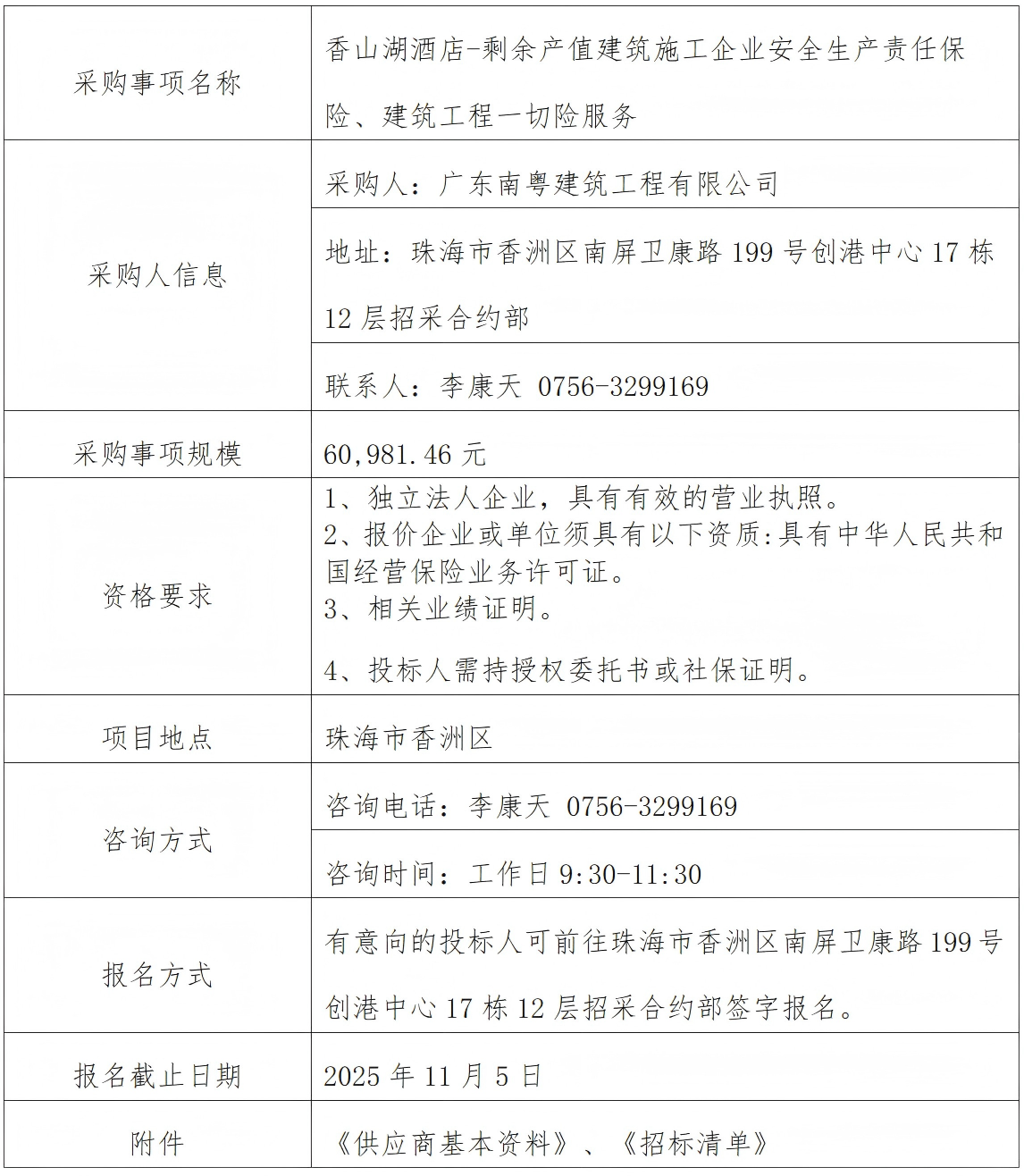 香山湖酒店-剩余產(chǎn)值建筑施工企業(yè)安全生產(chǎn)責(zé)任保險、建筑工程一切險服務(wù) 專欄:工程招標(biāo) 發(fā)布日期: 2025-10-31 作者:招采管理中心 附件:供應(yīng)商基本資料表 附件:香山迎賓館(現(xiàn)已變更為香山湖酒店)項目施工總承包延期-工程一切險及安責(zé)險保險服務(wù)招標(biāo)清單 返回列表 上一篇:鳳凰山山地步道項目(香山湖公園至海天公園段)-全線整改、維修工程專業(yè)分包(延期公示) 下一篇:廣昌保障房配套基礎(chǔ)設(shè)施項目施工總承包工程一切險、建筑施工企業(yè)安全生產(chǎn)責(zé)任保險(第二次)
