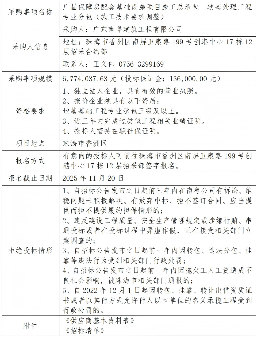 廣昌保障房配套基礎(chǔ)設(shè)施項目施工總承包--軟基處理工程專業(yè)分包(施工技術(shù)要求調(diào)整) 專欄:工程招標(biāo) 發(fā)布日期: 2025-11-18 作者:招采管理中心 附件:供應(yīng)商基本資料表 附件:廣昌保障房配套基礎(chǔ)設(shè)施項目施工總承包--軟基處理工程專業(yè)分包招標(biāo)清單 返回列表 上一篇:廣昌保障房配套基礎(chǔ)設(shè)施項目施工總承包-鋼板樁支護工程專業(yè)分包 下一篇:洪灣舊村更新項目周邊環(huán)山路等市政道路工程-波形護欄材料采購