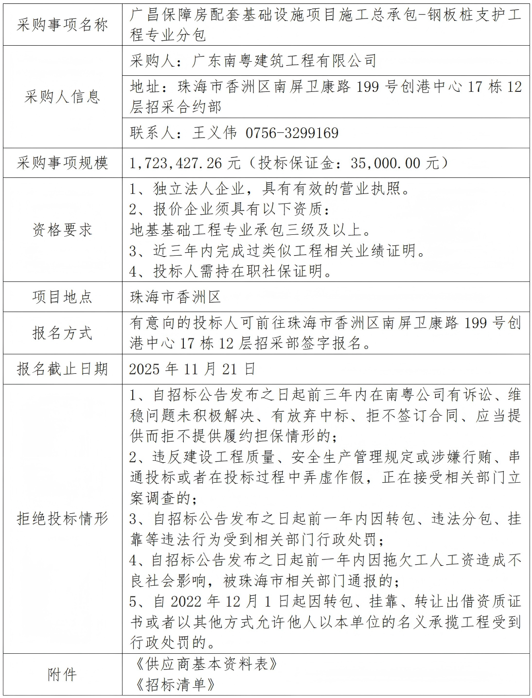 廣昌保障房配套基礎設施項目施工總承包-鋼板樁支護工程專業(yè)分包