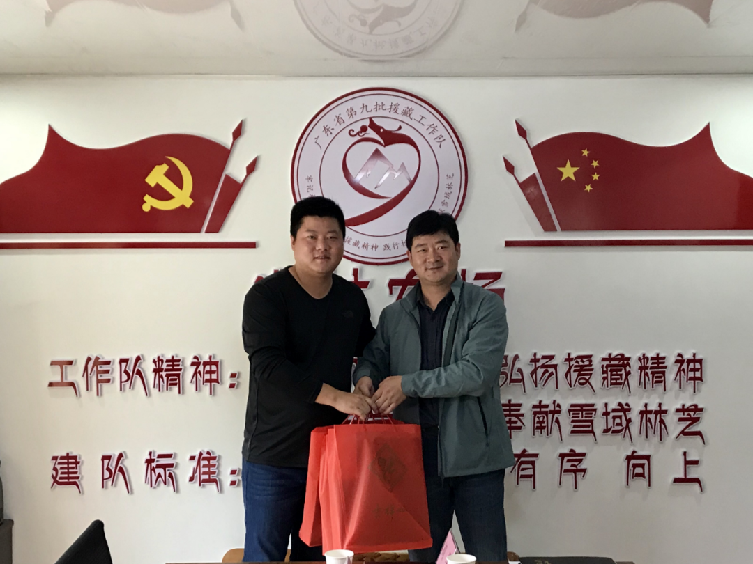 援藏工作考察領(lǐng)導(dǎo)小組前往米林農(nóng)場與廣東省第九批援藏工作隊(duì)米林農(nóng)場工作組進(jìn)行座談交流,并看望慰問我公司兩位援藏職工,了解其援藏期間工作及生活情況。