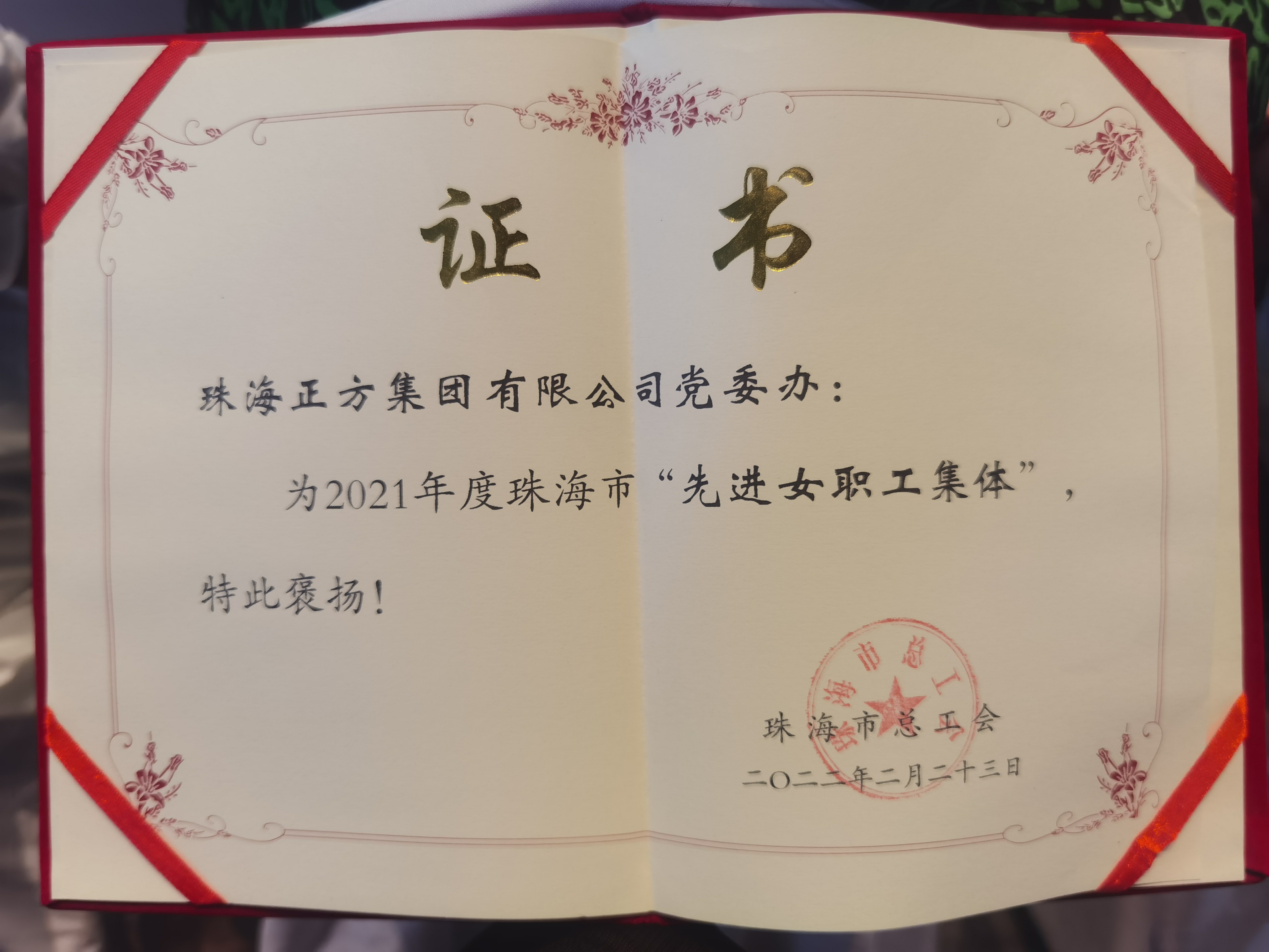 為弘揚(yáng)勞模精神、勞動(dòng)精神及工匠精神,激勵(lì)廣大女職工奮進(jìn)新征程、建功新時(shí)代,近日,珠海市總工會(huì)對30個(gè)“先進(jìn)集體”予以通報(bào)表揚(yáng),珠海正方集團(tuán)有限公司黨委辦獲得“2021年度珠海市‘先進(jìn)女職工集體’”榮譽(yù)稱號。