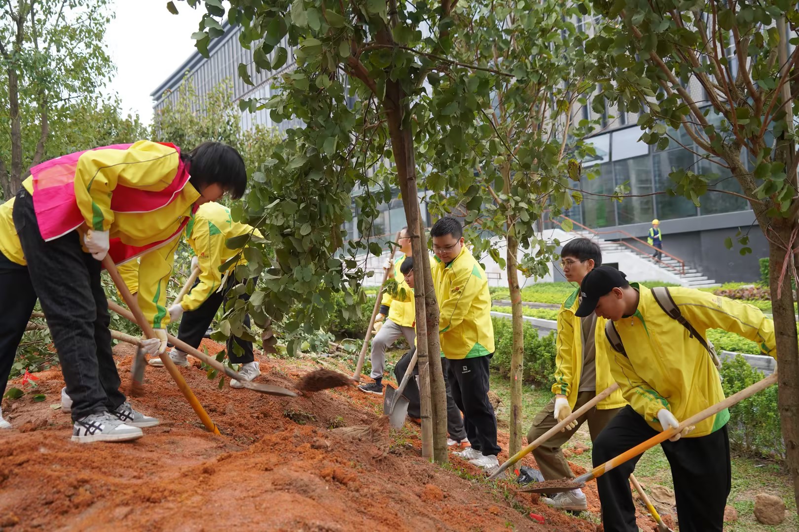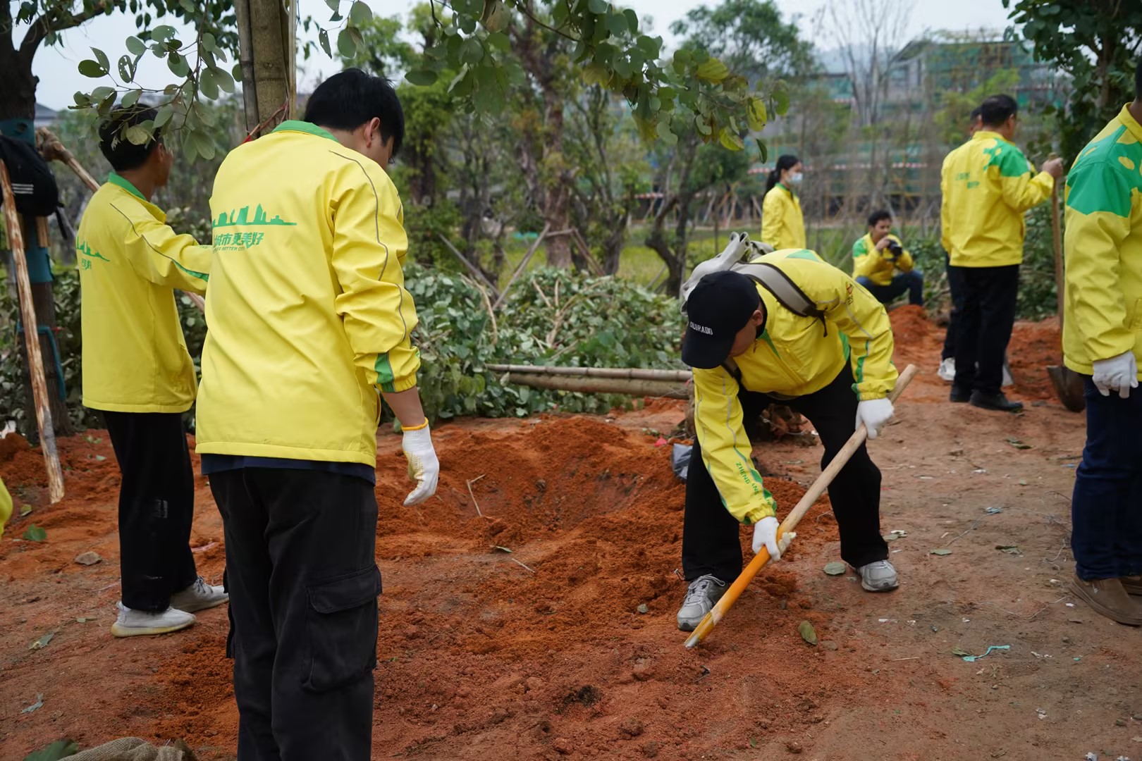 經(jīng)過專業(yè)技術(shù)人員的培訓(xùn)后,大家拿上鐵鍬、樹苗等物資紛紛前往指定區(qū)域植樹,活動(dòng)現(xiàn)場一片熱火朝天。大家擼起袖子鏟土、挖坑、扶苗、培土、澆水、施肥,各個(gè)環(huán)節(jié)默契配合、井然有序,共同打造出一片“正方青年林”。