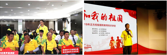 7月25日下午,“我和我的祖國·2019年正方控股國防教育安全知識(shí)講座”在正方·云創(chuàng)園14樓多功能廳圓滿召開。香洲正方黨員、團(tuán)員代表,以及各部、室、中心和各下屬公司退伍軍人共120人參加了本次活動(dòng)。