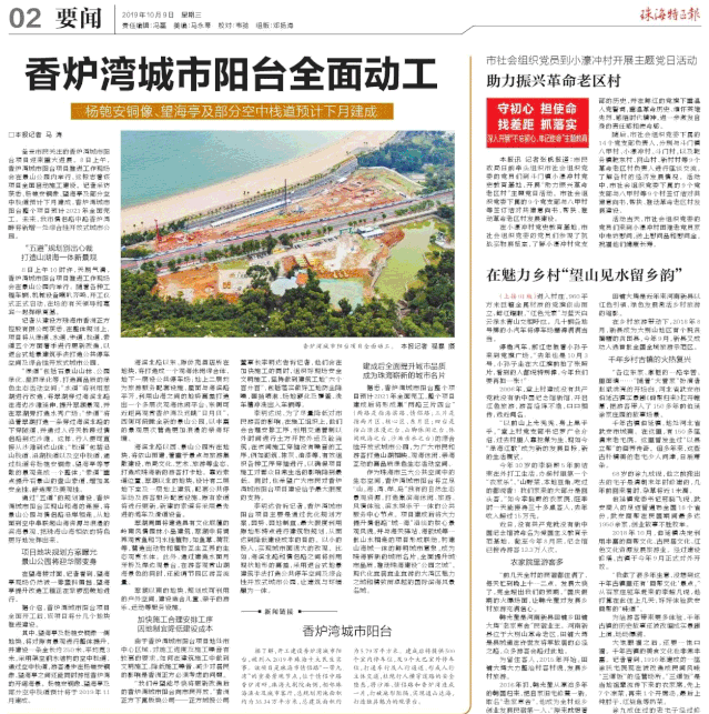 開工建設(shè)香爐灣城市陽臺,被列入2019年珠海十大民生實事。該項目是珠海市情侶路“一帶九灣”的重要景觀節(jié)點,位于情侶中路香爐灣畔,珠海大劇院南側(cè),相鄰珠海漁女及城市客廳,總規(guī)劃用地面積約為35.34萬平方米,總建筑面積約為5.79萬平方米。