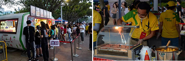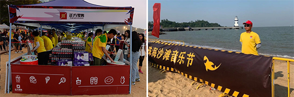 音樂節(jié)現(xiàn)場貼心設(shè)有16個售賣帳篷,提供飲料、熱食、冰品、沙灘用品等50余種商品?!靶↑S人”全力以赴做好食品安全審核工作,讓夜晚不僅有熱辣的音樂,還有安全可口的美食。