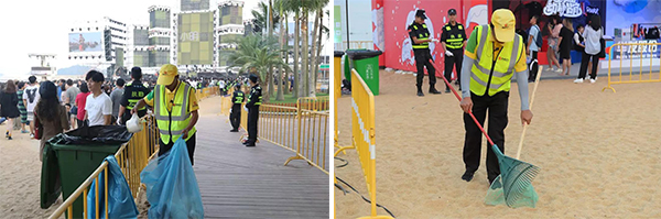 兩天的沙灘音樂節(jié),香洲正方共派出660人次到現(xiàn)場提供救生安全、保潔、零售、地毯式清潔等多項保障服務(wù)。