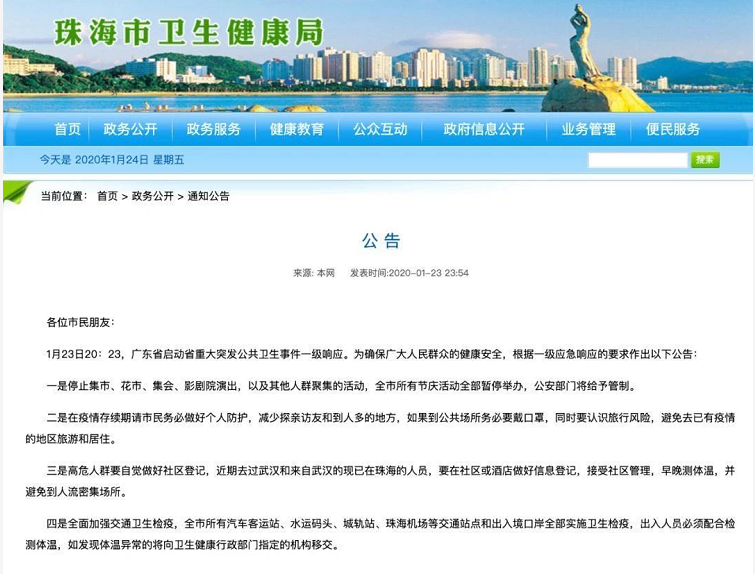 廣東省啟動省重大突發(fā)公共衛(wèi)生事件一級響應(yīng)。