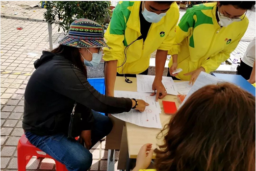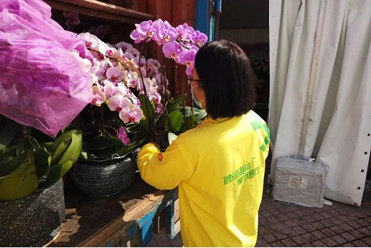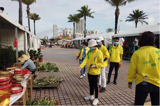 香洲正方撤場支援人員到場集合,花市撤場工作井然有序展開。在花市每個出入口,均有工作人員為進出的撤場人員進行體溫檢測,并提供口罩。