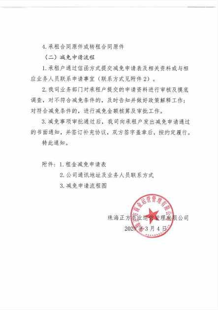 1.對(duì)于符合以上條件租用我司經(jīng)營用房的企業(yè)及個(gè)體工商戶免除2020年2月、3月兩個(gè)月租金,減免4月50%租金。