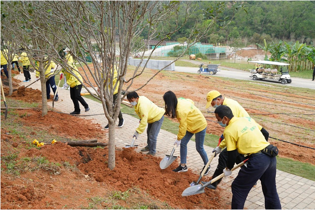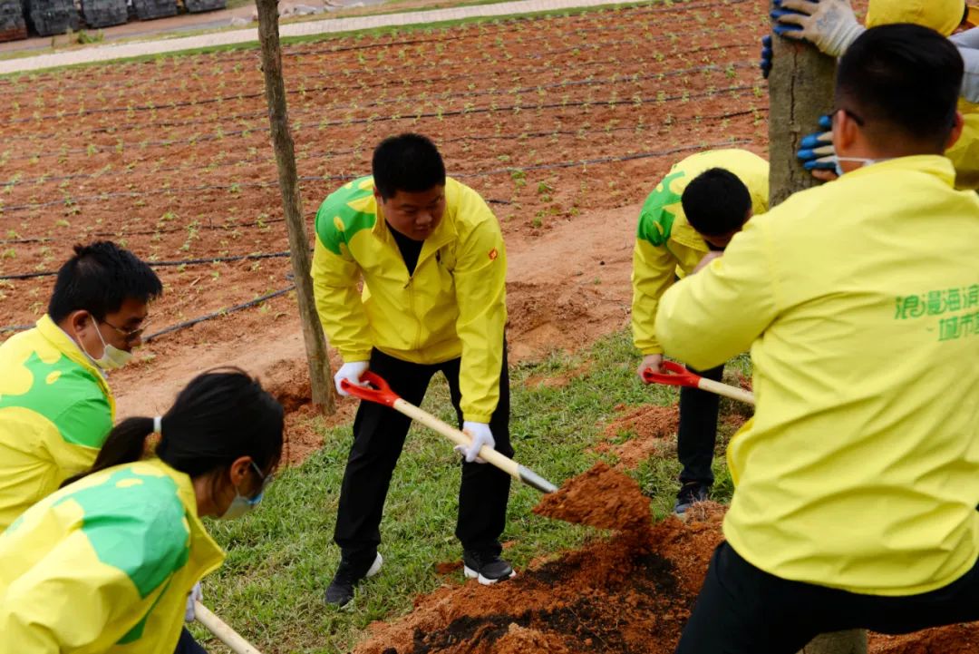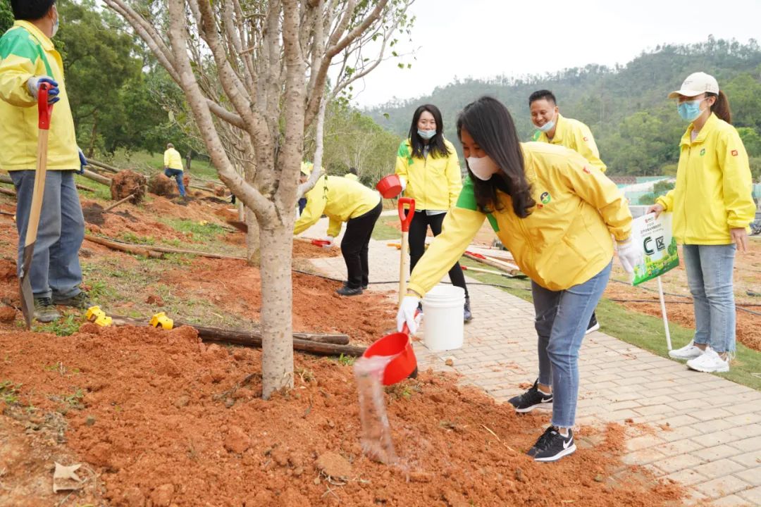 在疫情防控的特殊時期,參與人員在進入公園時均測量體溫、掃描粵康碼登記信息,并按照防疫要求佩戴口罩、手套,之后分成兩三人的小組開展植樹活動,做好植樹防疫兩不誤。