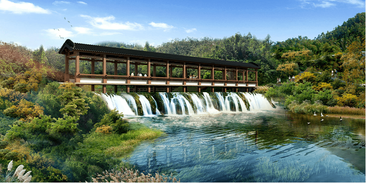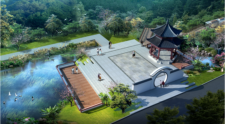 香洲正方利用地勢依水而建環(huán)湖碧水親水棧道,打造古色古香的水軒、跌水、景亭等。以“最小干預(yù)最大促進(jìn)”原則,將對生態(tài)的干擾降到最低,并最大限度維護(hù)場地原有生態(tài)格局,促進(jìn)資源的高效利用與循環(huán)再生。