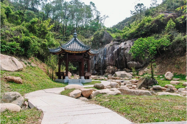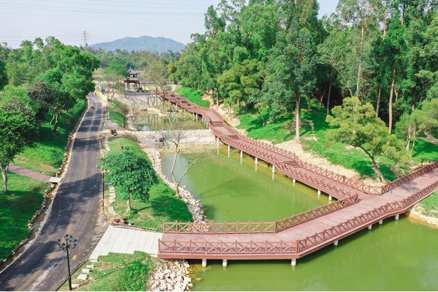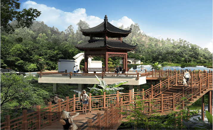 為實(shí)現(xiàn)這一設(shè)計(jì)思路,在市、區(qū)領(lǐng)導(dǎo)的關(guān)心指導(dǎo)下,香洲正方反復(fù)現(xiàn)場實(shí)地踏勘,通過最大限度地保留原有的山、水、草木等生態(tài)特征,不斷發(fā)掘原地貌特征中的景觀優(yōu)勢,結(jié)合傳統(tǒng)嶺南建筑風(fēng)格,對亭、臺、樓、榭、橋、廊、假山等景觀節(jié)點(diǎn)細(xì)心雕琢,令傳統(tǒng)建筑元素與現(xiàn)代舒適性需求充分結(jié)合,最終確定了總體規(guī)劃方案。