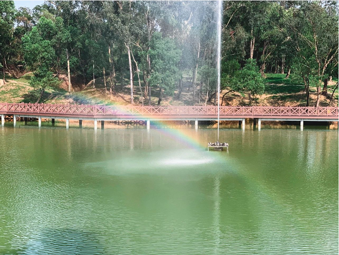 香山湖二期保留原有鳳凰山山泉湖水,實(shí)現(xiàn)水資源的循環(huán)利用,并輔以人造水景。在噴泉、跌水、瀑布、溪流景觀的設(shè)計(jì)中,利用潛水泵將水壓提升,滿足噴泉瀑布等景觀需求。