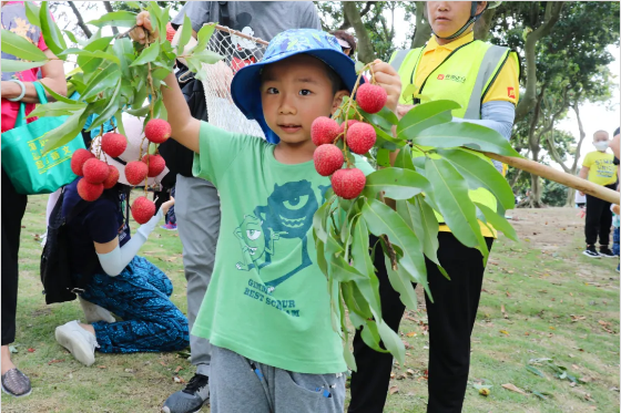 在工作人員的配合幫助下,荔枝林不時(shí)傳來(lái)小朋友和家長(zhǎng)們采摘到荔枝的歡呼聲。