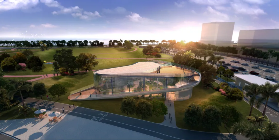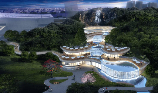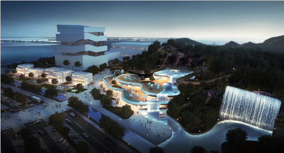 建筑與周邊山體景觀充分融合,外觀形成山體跌水景觀,自然與構(gòu)筑渾然一體,十分和諧。項目建成后,將作為海天公園園區(qū)配套為市民游客提供餐飲相關(guān)服務(wù),市民可享受廣闊海景、落日余暉的浪漫用餐環(huán)境。當(dāng)前,項目處在前期規(guī)劃階段。