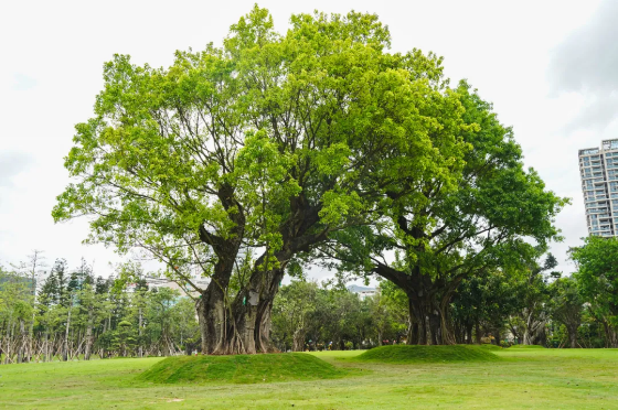 除了這幾棵300多歲的“高齡”古樹,小榕樹、異木棉、小葉紫薇等植物在園內(nèi)形成一片乘涼遮陰的好地方。