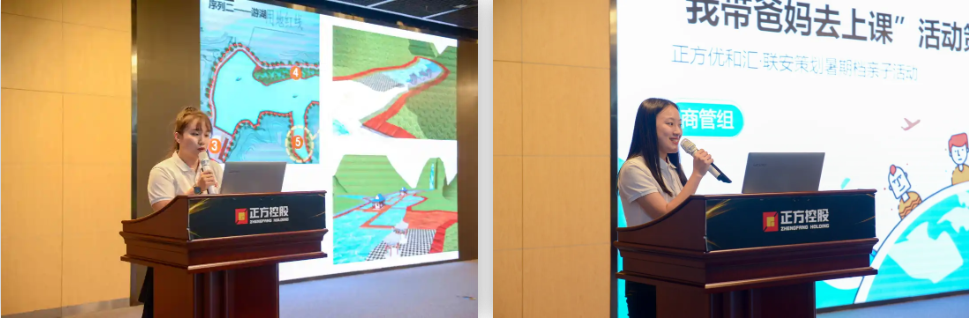 成果展示環(huán)節(jié),公共運營組、建設(shè)組、商管組代表全體管培生,通過別出心裁的創(chuàng)意、邏輯縝密的思路、條理清晰的解說,向大家展示了“集訓(xùn)任務(wù)卡”的精彩成果,展現(xiàn)了他們對正方文化、重點項目和相關(guān)業(yè)務(wù)的認識與理解。
