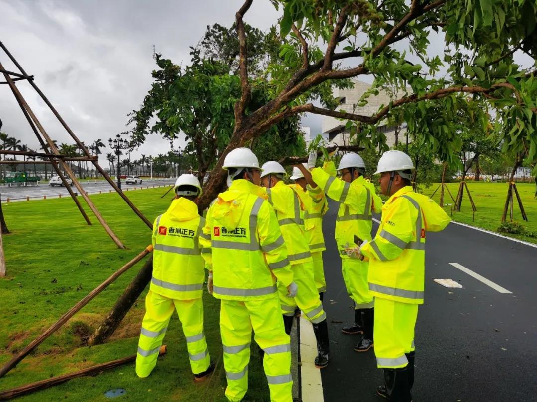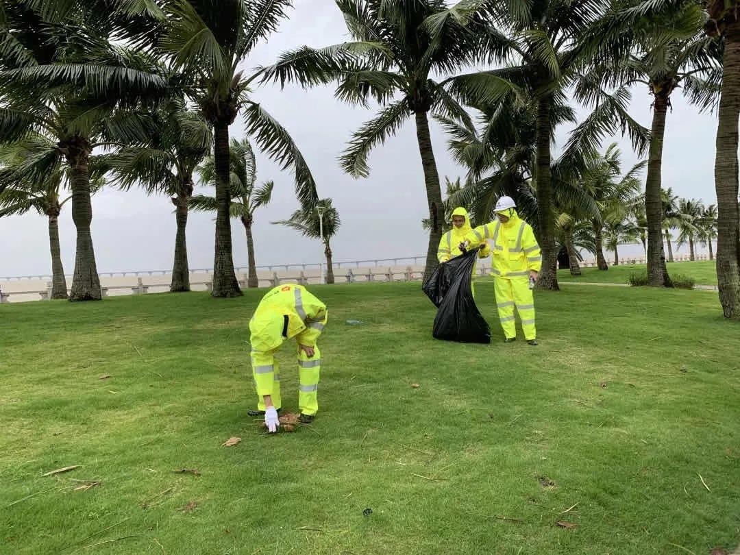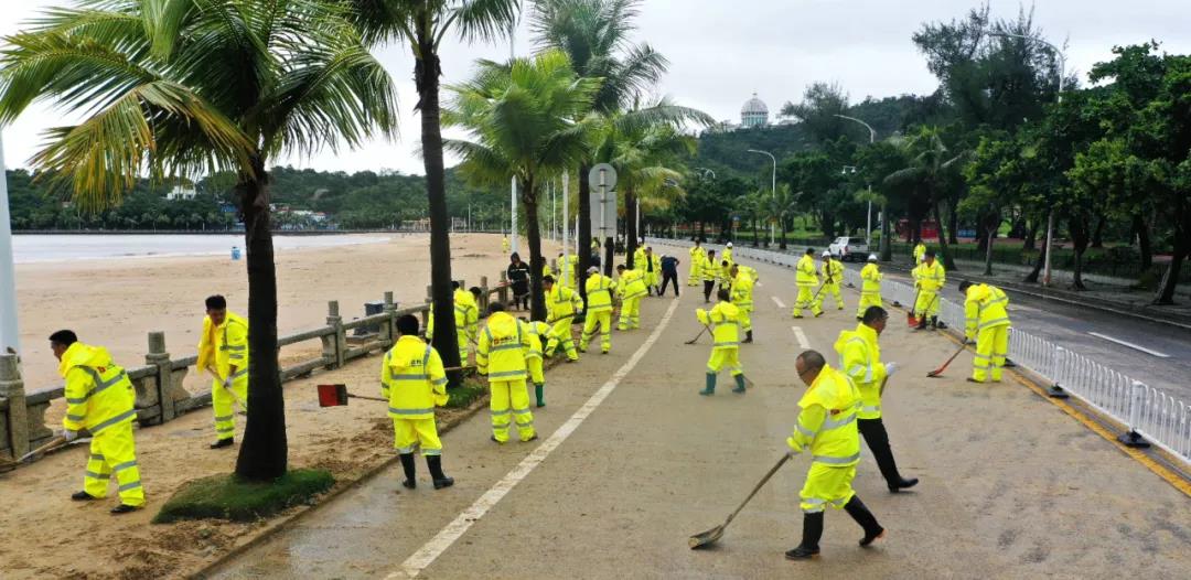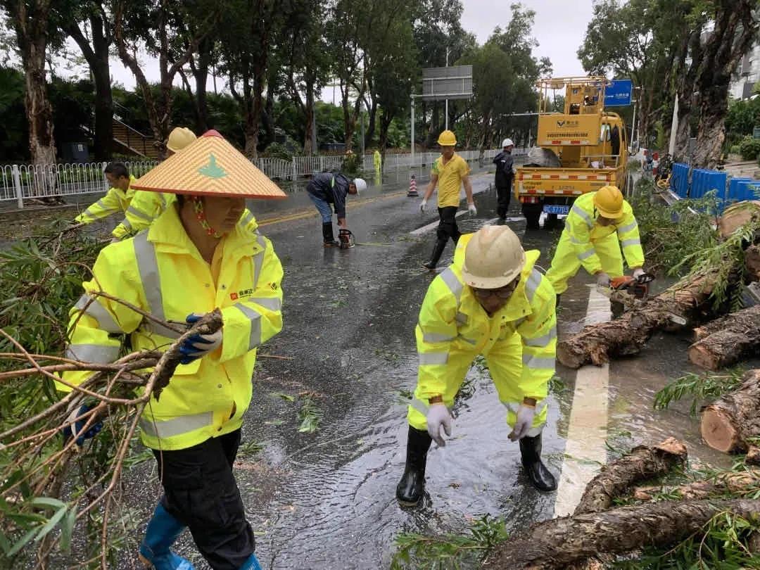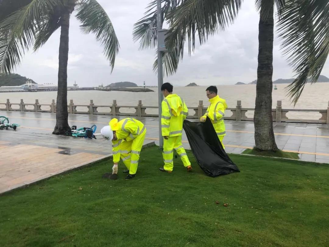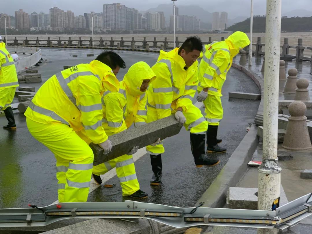 140個(gè)社區(qū)公園、150所公廁、三大沙灘、球場(chǎng)等全部關(guān)閉,張貼懸掛“三防”公告,撤離人員,加固園區(qū)門、窗、游船等;商業(yè)街門店關(guān)閉,停車場(chǎng)斷電立桿;各在建項(xiàng)目停工停電,做好現(xiàn)場(chǎng)防護(hù)措施,對(duì)現(xiàn)場(chǎng)設(shè)施及集裝箱進(jìn)行加固,配備防風(fēng)防汛物資及應(yīng)急隊(duì)伍;疏枝及修剪樹木6000余棵,加固樹木12000余棵,組織排查公園薄弱點(diǎn)140個(gè)。