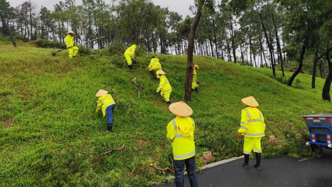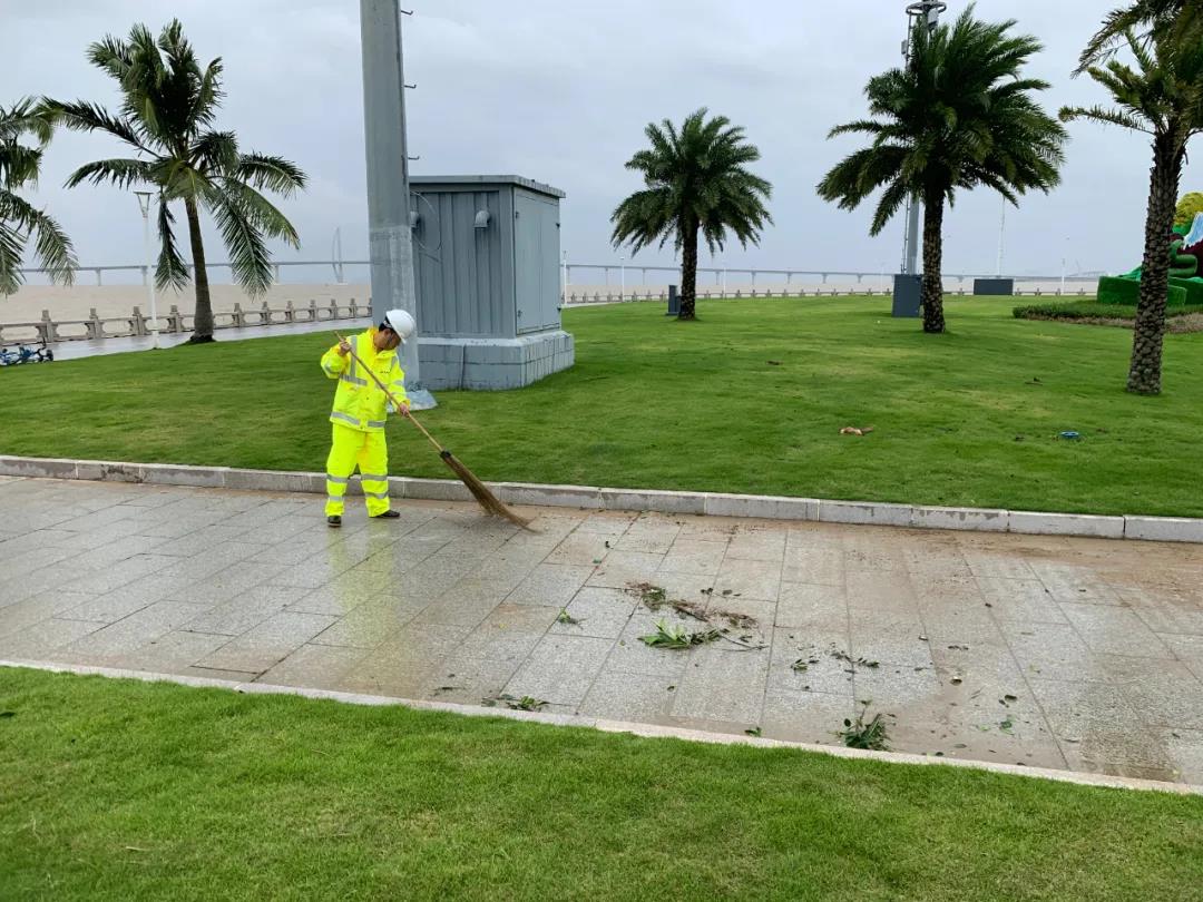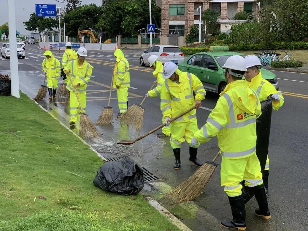 路堵了,橋封了,暴風(fēng)驟雨瘋狂肆虐。整個(gè)城市在夜色中仿佛靜止,然而,當(dāng)晨光微熹,卻有1000多名小黃人迎著未散的風(fēng)雨,從徹夜堅(jiān)守的崗位上沖向與臺(tái)風(fēng)的斗爭(zhēng)之中,在情侶南路,小黃人們積極清理路面上的海水,收拾草坪上的樹葉、垃圾...