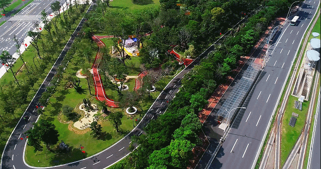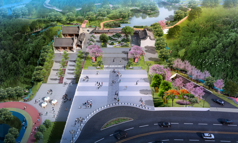 公園三期重點構(gòu)造“兩場兩道”,“兩場”:一是主入口廣場設(shè)有門樓、書吧、便利店等配套設(shè)施,二是地下停車場,含有百余車位。