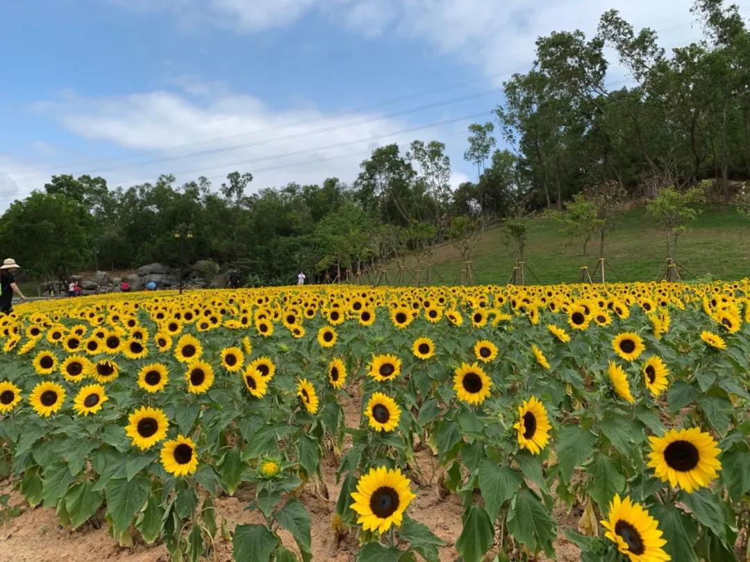 節(jié)日里的香山湖公園多了一份“彩色”加持,愛情郵局門外的450平方米的小花園;荔枝林約420平方米的香彩雀;還有二期的向日葵花海、350株香水蓮花、100株荷花,更有香山湖露營驛站的夏瑾、孔雀草……