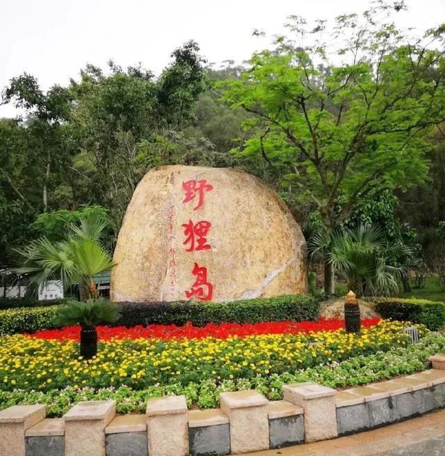 在新月橋右轉(zhuǎn)位置的入口處,山前巨石上書寫的“野貍島”三個(gè)紅字格外醒目。高低錯(cuò)落的椰子樹婆娑搖曳,綠色的草坪、鮮紅的步道以及盛開的鮮花猶如一幅優(yōu)美的水彩畫。