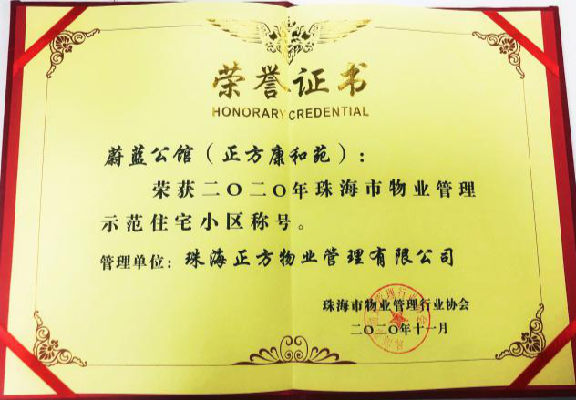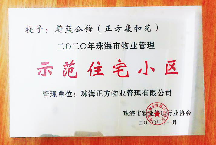珠海市物業(yè)管理示范項(xiàng)目驗(yàn)收組經(jīng)過多次現(xiàn)場專項(xiàng)檢查并定期進(jìn)行抽查,蔚藍(lán)公館(正方康和苑)在11月13日榮獲“2020年珠海市物業(yè)管理示范項(xiàng)目”榮譽(yù)稱號(hào)。