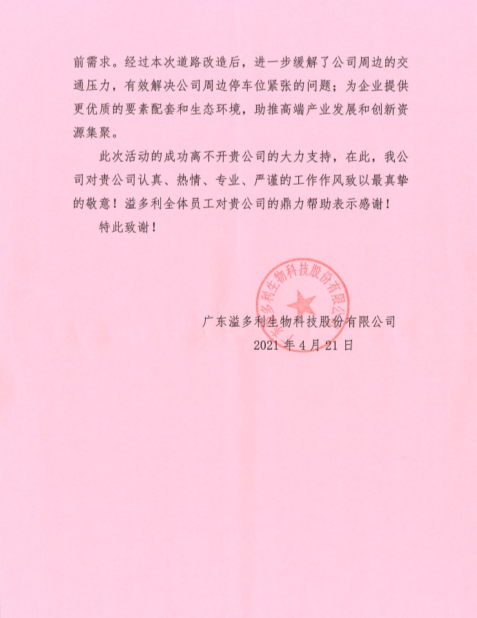 “此次活動(dòng)的成功離不開(kāi)貴公司的大力支持,在此我公司對(duì)貴公司認(rèn)真、熱情、專(zhuān)業(yè)、嚴(yán)謹(jǐn)?shù)墓ぷ髯黠L(fēng)致以最真摯的敬意!”——廣東溢多利生物科技股份有限公司