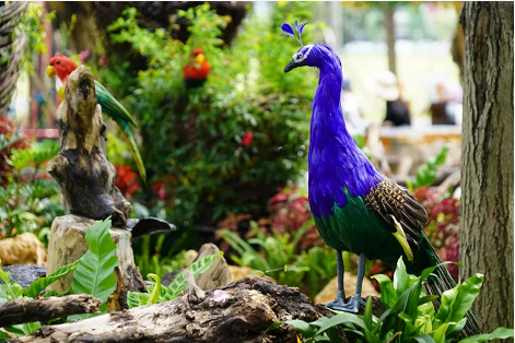 作品描述:此作品以藤蔓月亮為主景,結(jié)合多種蘭花、火山石、吸水石以及高壓霧化系統(tǒng)等配搭,營(yíng)造出仙霧繚繞、云中之月的精致景觀。同時(shí)結(jié)合了七彩燈光、流星燈等五彩斑斕的燈光,更加凸顯其特色,煙霧與燈光的結(jié)合,蘭花與月亮的造型,孔雀與鸚鵡的豐富元素,一切互相聯(lián)動(dòng),仿佛進(jìn)入人間仙境,此乃云中蘭月。