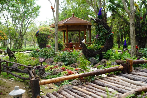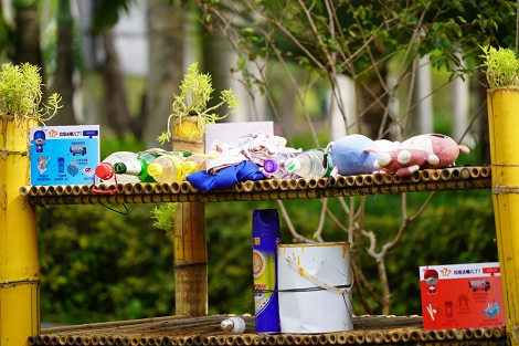 作品描述:該作品以輪胎、油桶、臺(tái)風(fēng)枯枝、廢棄PVC水管、修剪剩下的竹子等破舊廢料為主要材料,通過(guò)刷漆加工彩繪,再用時(shí)花、植物點(diǎn)綴,營(yíng)造出特色主題小景,不僅可以美化景觀,還起到了科普垃圾分類,引導(dǎo)市民提高環(huán)保意識(shí)的作用。