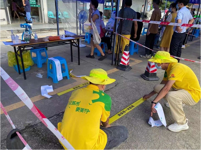 黨員干部靠前指揮,廣大黨員帶頭支援。6月8日-9日,由公司班子帶領(lǐng)千余名員工分成50個(gè)分隊(duì),奔赴南屏鎮(zhèn)、梅華街道、灣仔街道、香灣街道、吉大街道、翠香街道、拱北街道等7個(gè)鎮(zhèn)街,支援開展核酸檢測工作。白衣請?jiān)?,星火馳援。在疫情防控的關(guān)鍵時(shí)刻,正方小黃人積極參與支援核酸檢測工作,不畏險(xiǎn)阻、逆風(fēng)前行、義無反顧地奔赴各個(gè)核酸檢測點(diǎn),為“白衣天使”們做好最堅(jiān)實(shí)的保障。帳篷搭建、警示帶布置、物資擺放、穿戴防護(hù)道具,所有工作準(zhǔn)備完畢,正式開始核酸檢測工作。