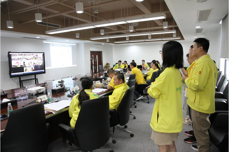 15時(shí)15分,模擬市氣象局發(fā)布臺(tái)風(fēng)紅色預(yù)警信號(hào),臺(tái)風(fēng)登陸,海天公園大量樹木傾倒,海天優(yōu)和匯地下積水嚴(yán)重,一人被困,公司三防指揮部啟動(dòng)防風(fēng)Ⅰ級(jí)應(yīng)急響應(yīng),連線項(xiàng)目現(xiàn)場(chǎng),組織人員緊急應(yīng)援。