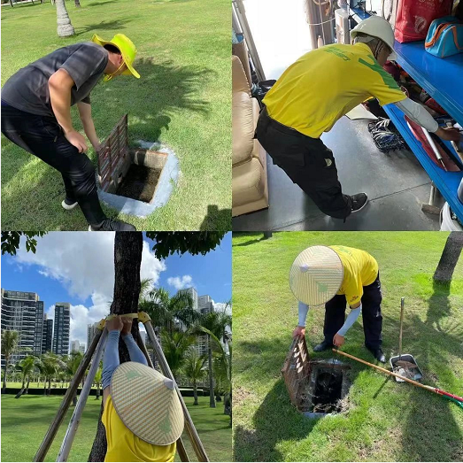 懸掛安全告示牌、公園樹木加固、清理下水道排水口