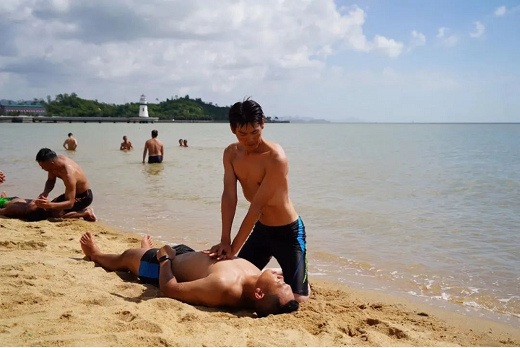 海濱泳場(chǎng)模擬臺(tái)風(fēng)登陸時(shí),在泳場(chǎng)開展溺水人員營救、心肺復(fù)蘇等實(shí)戰(zhàn)演練,切實(shí)提高應(yīng)急搶險(xiǎn)隊(duì)伍的綜合作戰(zhàn)能力。