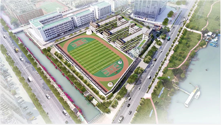 最引人注目的,是建在文體綜合樓頂?shù)?00米環(huán)形標(biāo)準(zhǔn)田徑運(yùn)動(dòng)場(chǎng),這是我區(qū)學(xué)校配建的第一個(gè)“空中運(yùn)動(dòng)場(chǎng)”,通過(guò)向“天空要面積”,讓整個(gè)學(xué)校進(jìn)一步“變大”、“變寬”,為師生提供足夠的運(yùn)動(dòng)空間,也為校園增添別樣的美感。