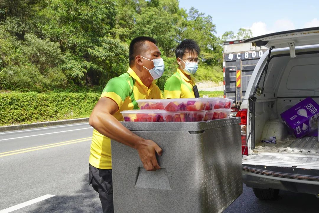 前方24小時值守,后方24小時響應(yīng)。志愿隊伍出發(fā)的那一刻起,后勤服務(wù)隊伍也立即成立,并開展緊張的物資清點、整理和運輸工作,第一時間將防疫物資、帳篷、桌椅、飲用水等必備物資運送至各個服務(wù)點。他們是前線志愿者的大管家、貼心服務(wù)者,他們每天不停來往于各個志愿服務(wù)崗位,送去物資、清涼和來自公司的貼心關(guān)懷。