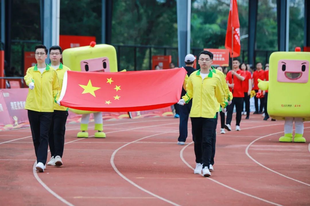 伴隨著昂揚的旋律,護旗手們邁著堅定的步伐,護擁著五星紅旗向我們走來。嘹亮的口號、整齊的步伐展示了正方人活力奮發(fā)的風采。正方集團及各下屬公司代表隊依次入場,他們以鏗鏘有力的步伐走向主席臺,將各自的特色融入風采展示,以飽滿的精神、力與美結合的舞姿上演了屬于正方人的視覺盛宴,獲得現(xiàn)場觀眾陣陣掌聲。
