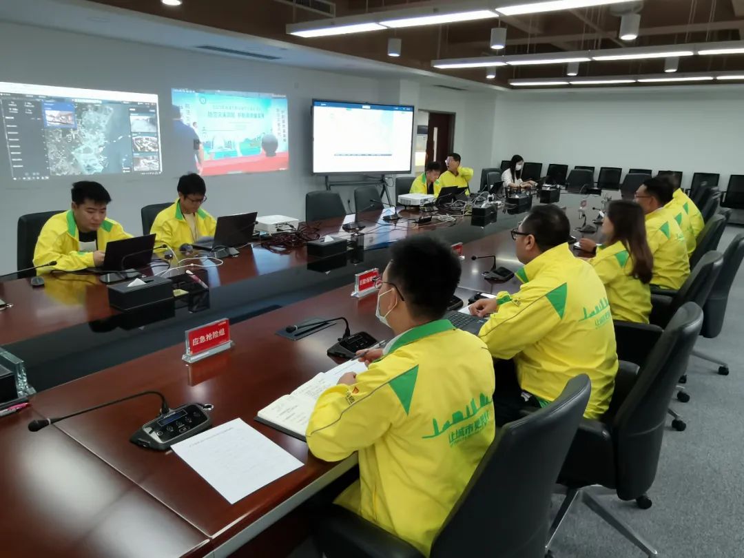 正方集團迅速在云創(chuàng)園成立三防指揮部,拉通應急指揮系統(tǒng)、監(jiān)控系統(tǒng)、車輛管理系統(tǒng)、記錄儀直播,實現(xiàn)信息化、系統(tǒng)化、實時化的應急指揮。各小組各司其職,迅速、高效、有序展開各項模擬演練工作。