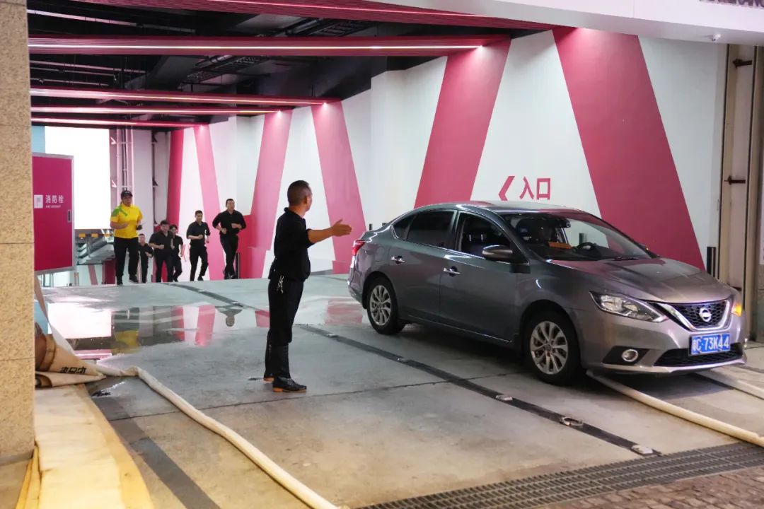 與此同時,秩序維護組已在城市陽臺就位,引導地下車庫車輛及人員快速有序進行安全轉移。監(jiān)控中心監(jiān)控員利用地下車庫攝像頭仔細巡查有無人員被困,并通知巡邏隊員同步展開排查搜救。