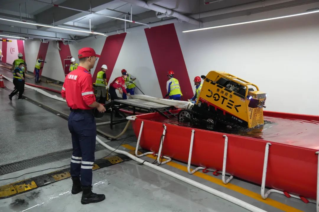 隨著水位不斷升高,應急隊伍相互聯(lián)動,啟動“大水牛”排澇機器人、排澇泵車等工具第一時間開展抽排水工作,在最短時間內(nèi)清除積水。隨后,消殺組迅速銜接開展消殺,扎實做好衛(wèi)生防疫工作。