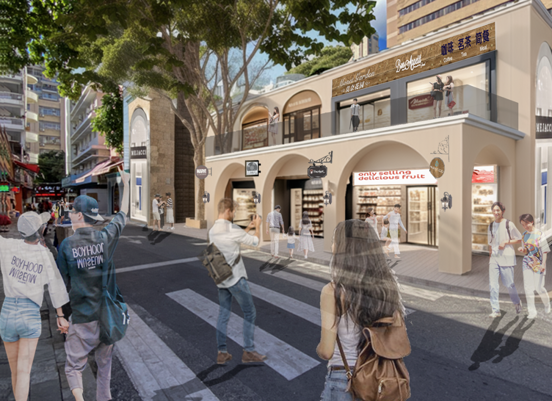通過對片區(qū)不同位置、節(jié)點的劃分,進行街區(qū)分級改造。從具有葡澳特色風格的牌坊作為形象展示窗口吸引客流進入,到臻選樓棟設(shè)計師打造一樓一景,引導人流進入片區(qū)的核心。香洲埠將用借助歷史和現(xiàn)代的碰撞,吸引更多的新生代人群,延續(xù)百年商埠的煙火氣。
