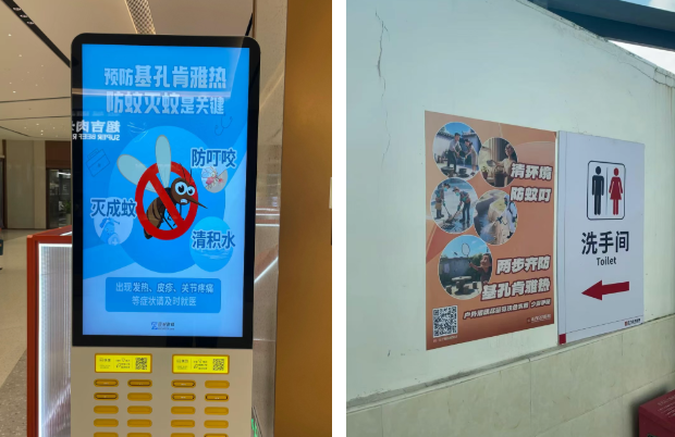 在推進(jìn)環(huán)境整治的同時(shí),正方集團(tuán)積極拓展宣傳渠道,在管養(yǎng)公園、運(yùn)營商圈等重點(diǎn)公共場所,通過張貼防蚊標(biāo)語、電子屏滾動播放防蚊公益海報(bào)等方式,廣泛宣傳蚊媒傳染病危害與防護(hù)要點(diǎn),普及“清積水、防孳生”等核心知識,切實(shí)增強(qiáng)市民自我防護(hù)意識和能力。