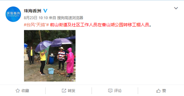 微博-珠海香洲:前山街道及社區(qū)工作人員在香山湖公園轉(zhuǎn)移工棚人員 2017-08-23 微博-珠海香洲:前山街道及社區(qū)工作人員在香山湖公園轉(zhuǎn)移工棚人員 返回列表 上一篇:珠江晚報(bào):努力清障修復(fù)“容顏”香洲18個社區(qū)公園已恢復(fù)開放 下一篇:珠海網(wǎng):園林企業(yè)自發(fā)救樹 連根拔起的大樹能救活!成活率80%以上!