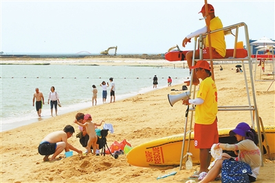 為全面保障入園市民游客的人身安全,正方公共運營公司在城市客廳內(nèi)增設(shè)了多處“安全提示”及“入海安全須知”等貼心提醒標(biāo)識,并按照水域的安全條件劃分出“安全游泳區(qū)”,增設(shè)了安全繩等各項保障設(shè)施。