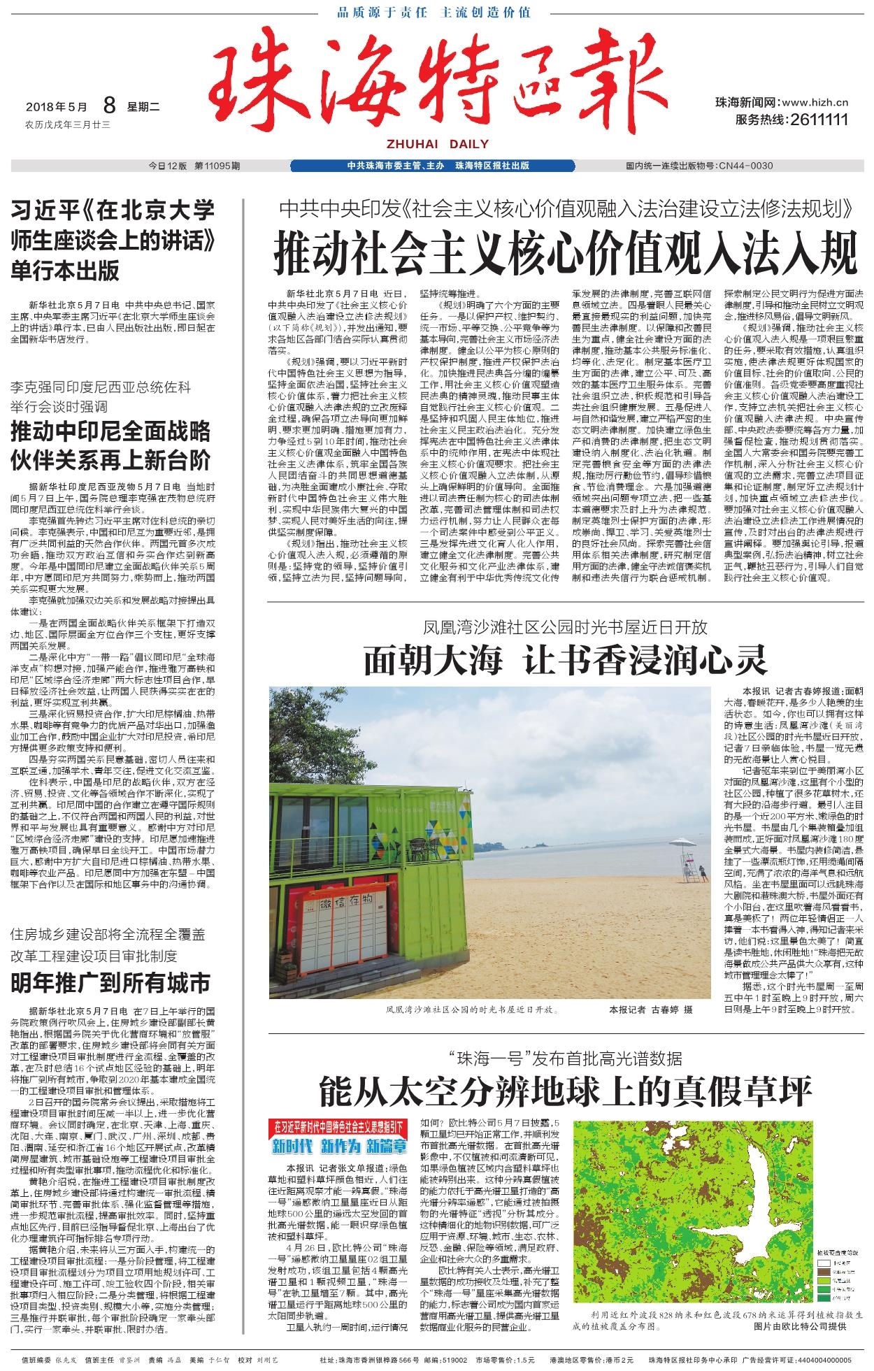 珠海特區(qū)報(bào):鳳凰灣沙灘社區(qū)公園時(shí)光書屋今日開放,面朝大海,讓書香浸潤心靈