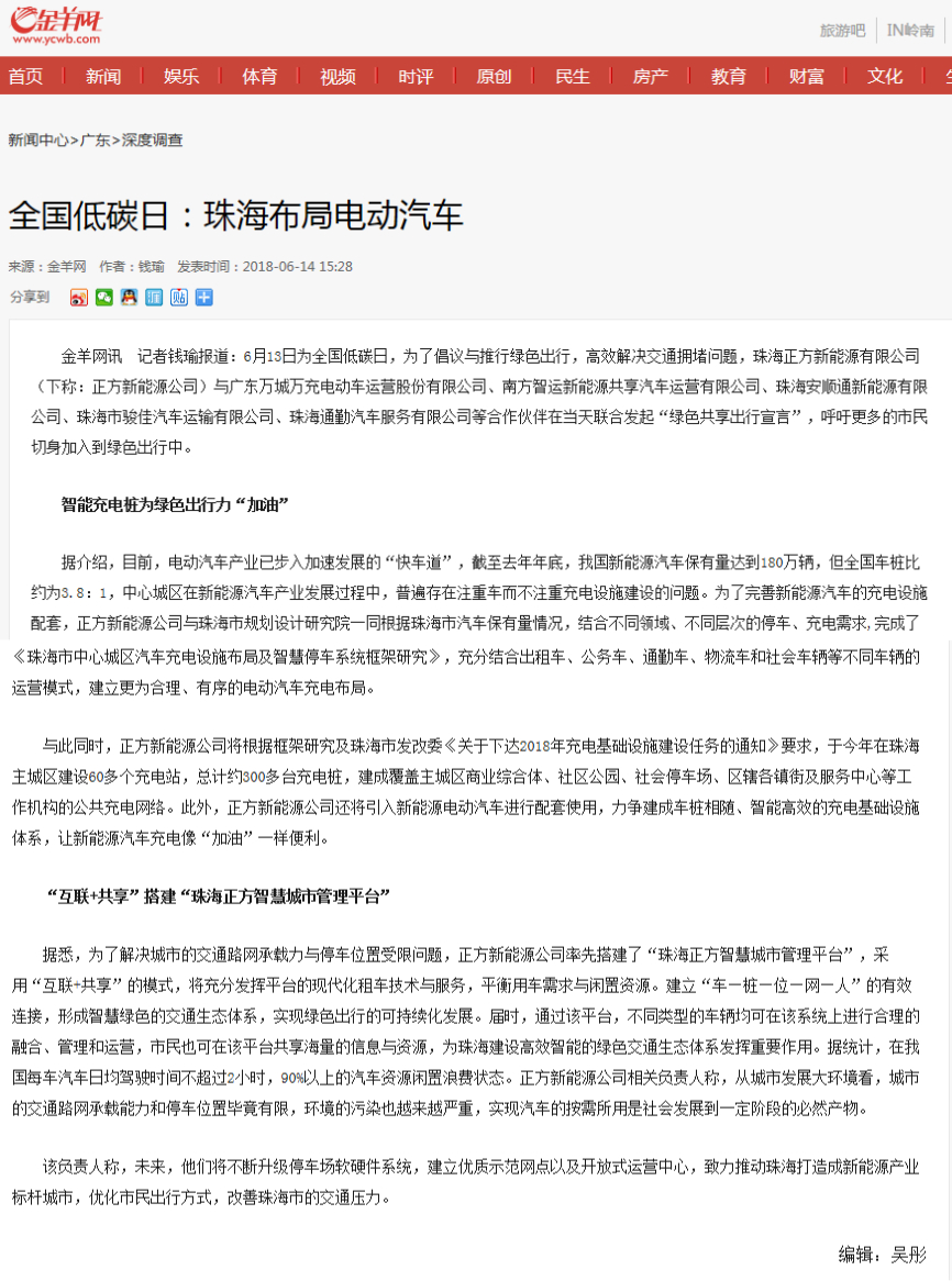 6月13日為全國低碳日,為了倡議與推行綠色出行,高效解決交通擁堵問題,珠海正方新能源有限公司(下稱:正方新能源公司)與廣東萬城萬充電動(dòng)車運(yùn)營股份有限公司、南方智運(yùn)新能源共享汽車運(yùn)營有限公司、珠海安順通新能源有限公司、珠海市駿佳汽車運(yùn)輸有限公司、珠海通勤汽車服務(wù)有限公司等合作伙伴在當(dāng)天聯(lián)合發(fā)起“綠色共享出行宣言”,呼吁更多的市民切身加入到綠色出行中。