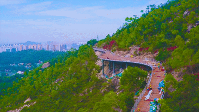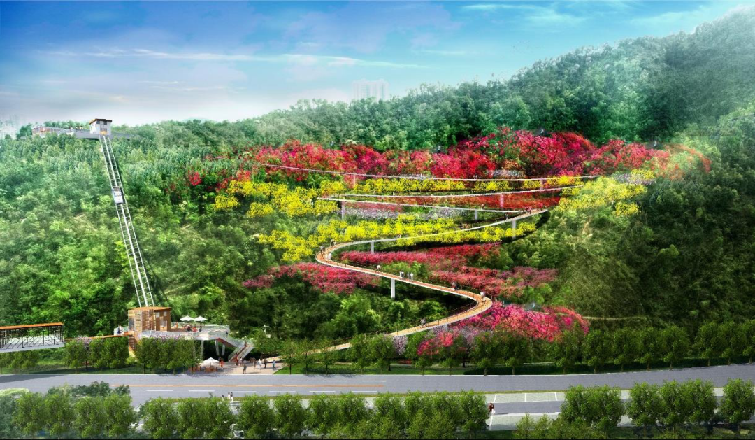板樟山山地步道包括空中步道、森林步道、景觀橋、山頂驛站、無障礙垂直交通系統(tǒng)設施等子項及配套的景觀照明、安監(jiān)系統(tǒng)、標識系統(tǒng)、休憩設施、綠化修復等。