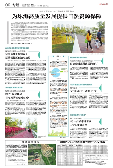12月8日,市政府舉行自然資源工作專場新聞發(fā)布會。市自然資源部門精準(zhǔn)配置自然資源,著力保障重大項目落地,在促進珠海高質(zhì)量發(fā)展方面展示了其與時俱進,務(wù)實高效的一面。