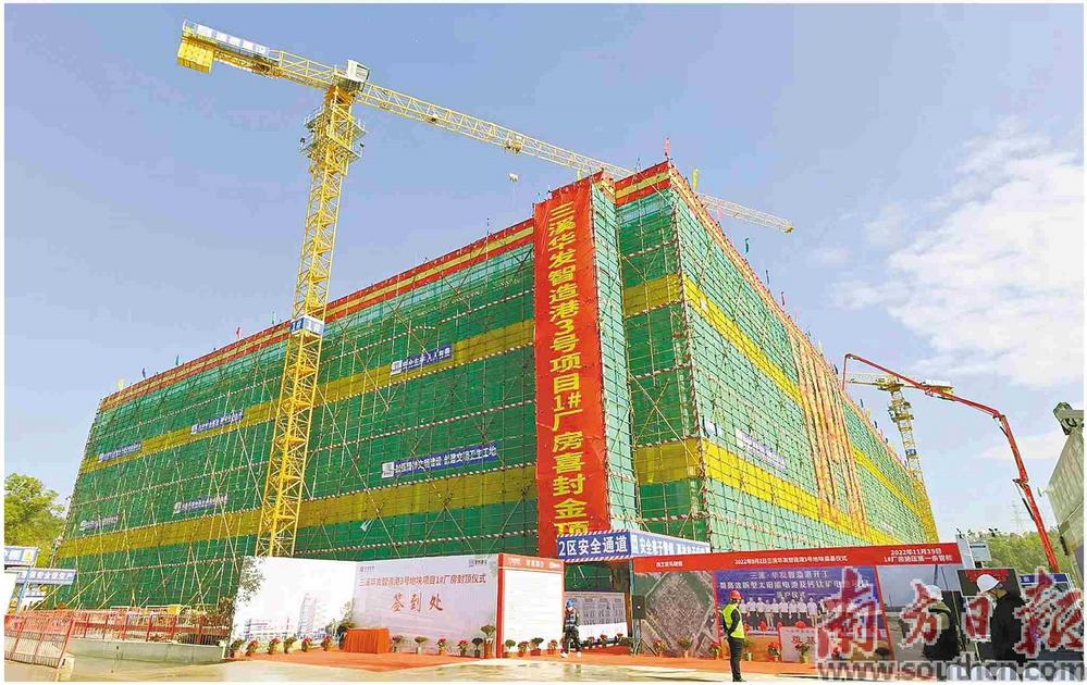 三溪·華發(fā)智造港3號(hào)項(xiàng)目1號(hào)廠房封頂。香洲區(qū)供圖